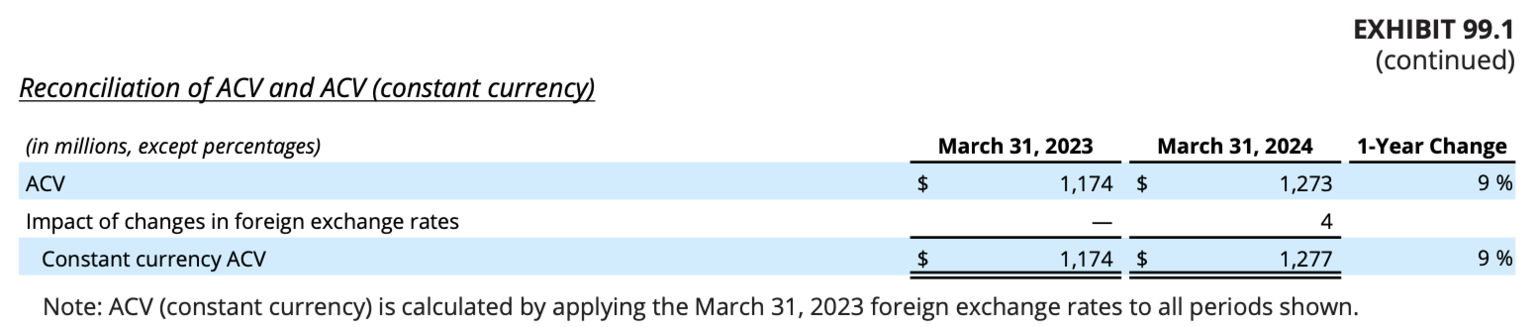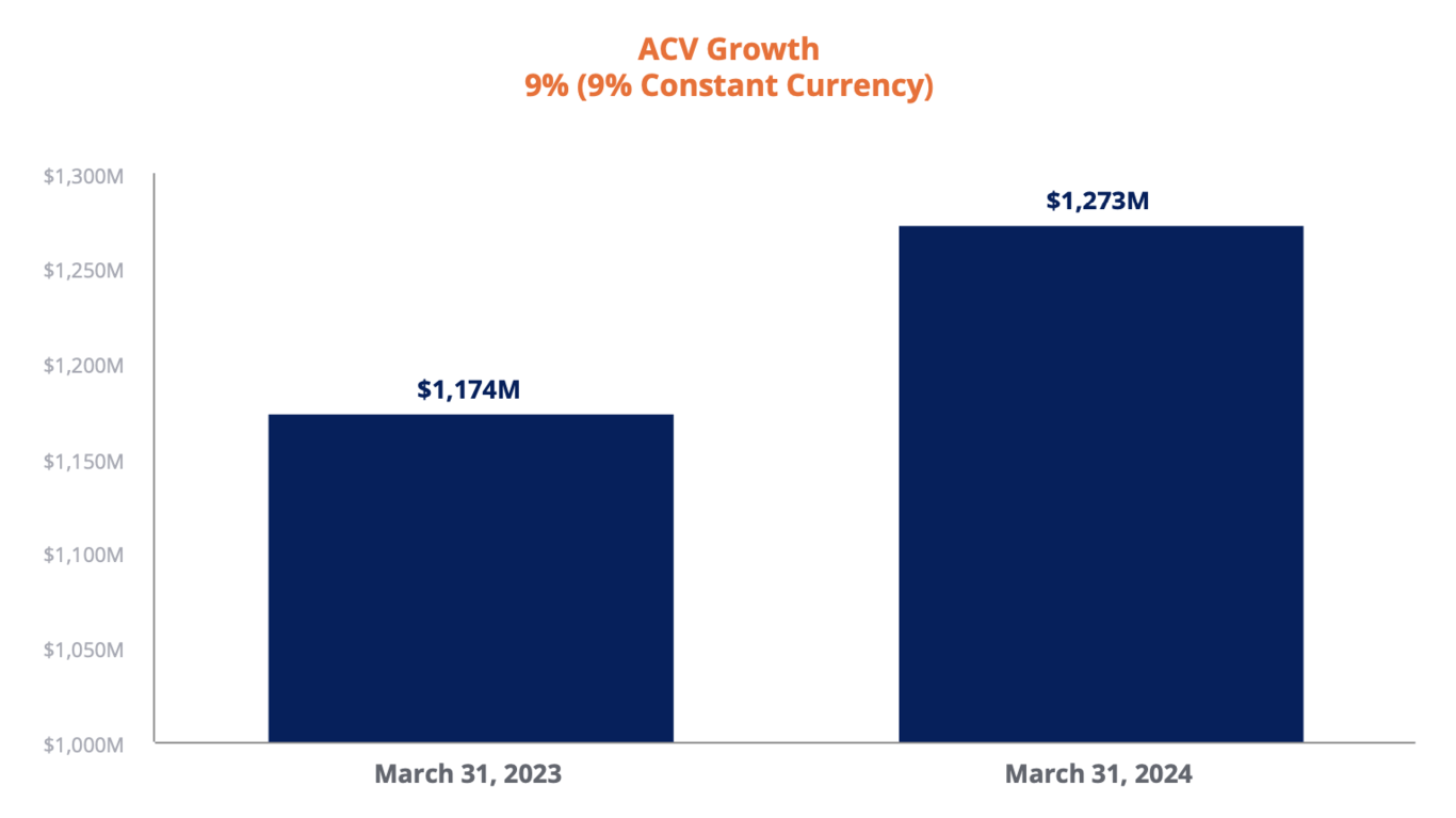 - Annual contract value (ACV) grows 9% year over year