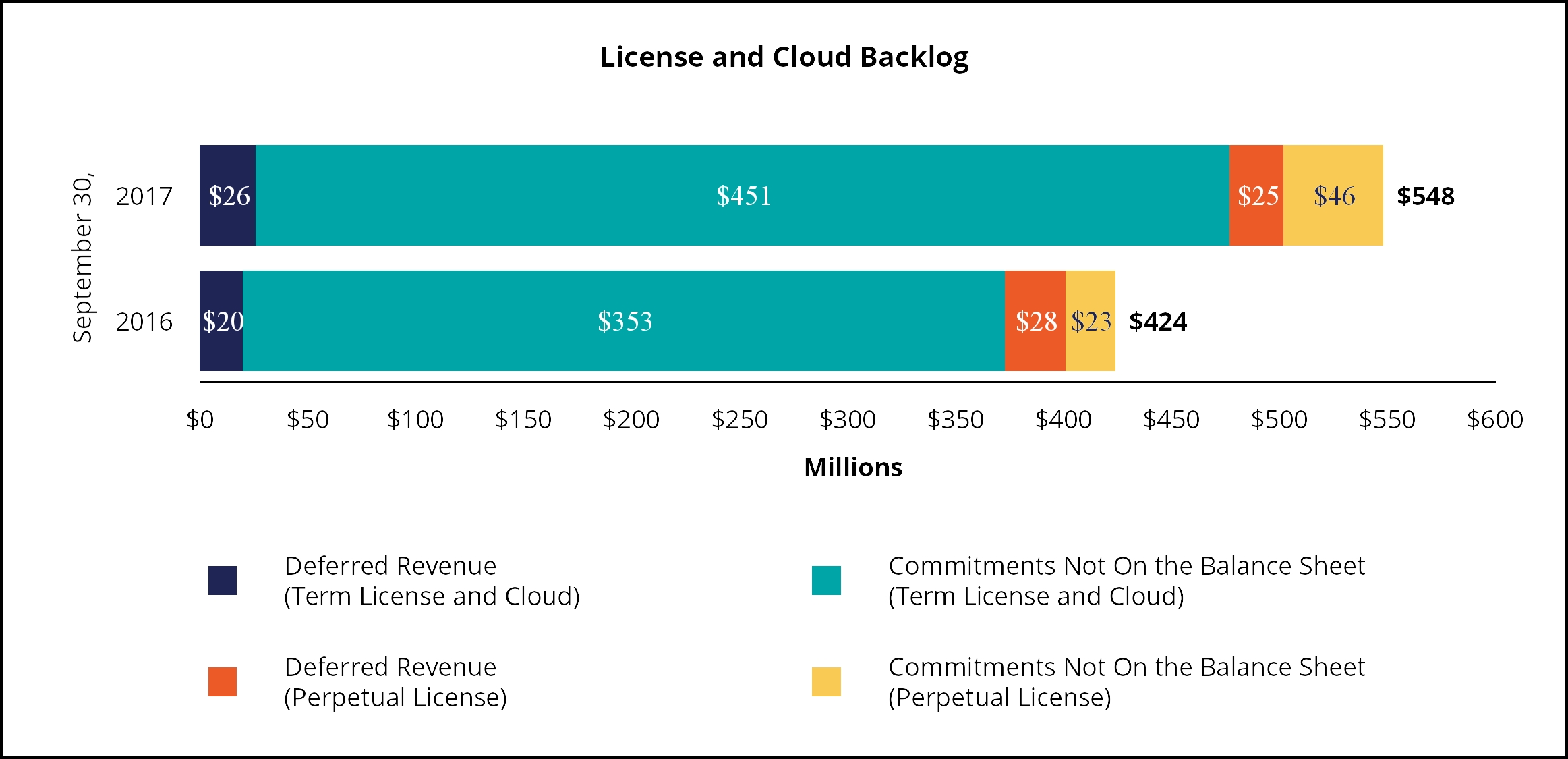 Historically, Recurring Revenue and License and Cloud Backlog have been our primary performance metrics. However, due to the change in the revenue recognition patterns of term license arrangements as a result of the expected implementation of the new revenue accounting standard (See Note 2 of our Form 10-Q for the quarter ended September 30, 2017) in the first quarter of 2018, we have started tracking Annual Contract Value (“ACV”), a new performance measure.