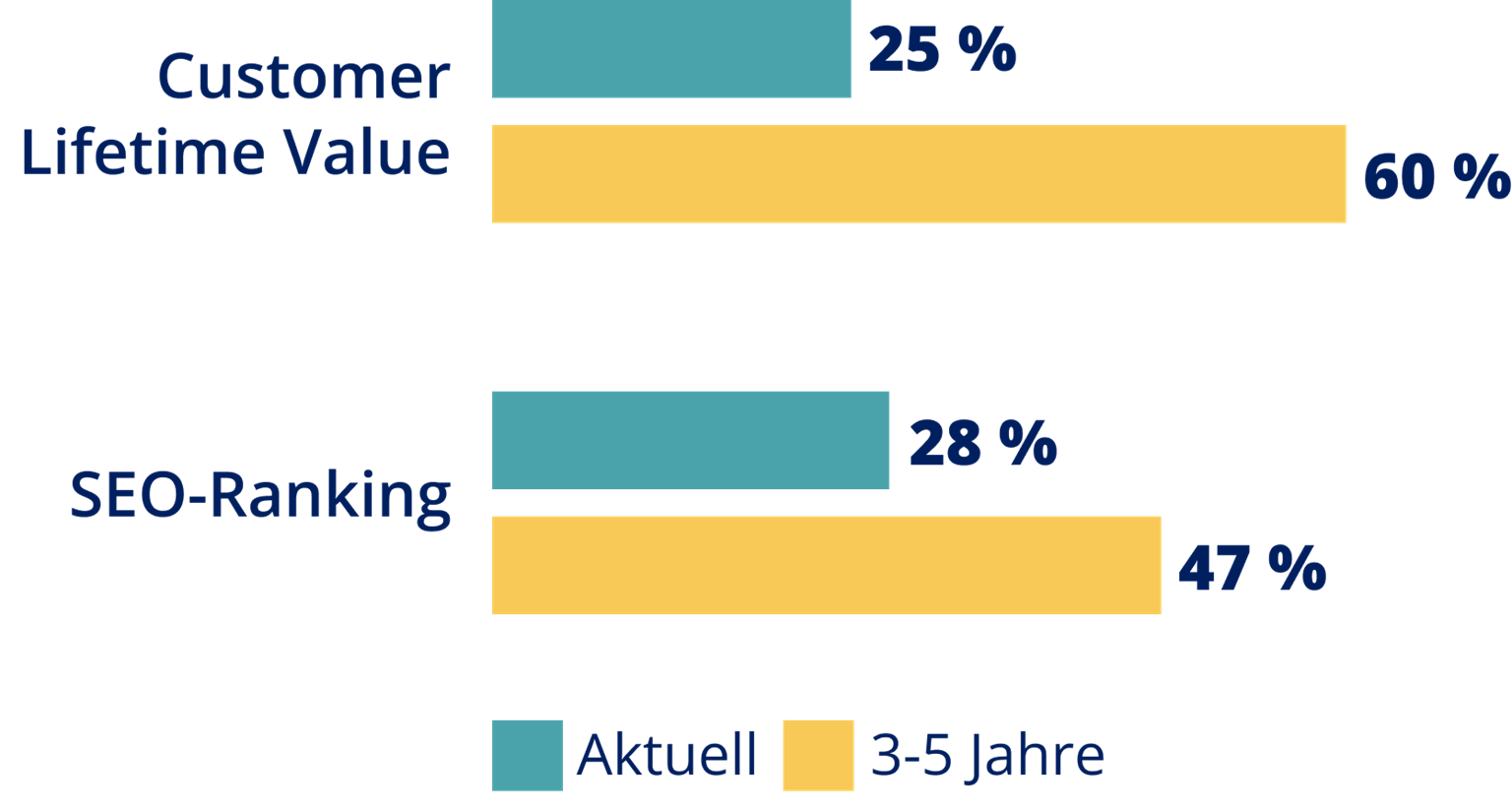 Die Bedeutung des SEO-Rankings als KPI steigt in drei bis fünf Jahren von 28 % auf 47 %.