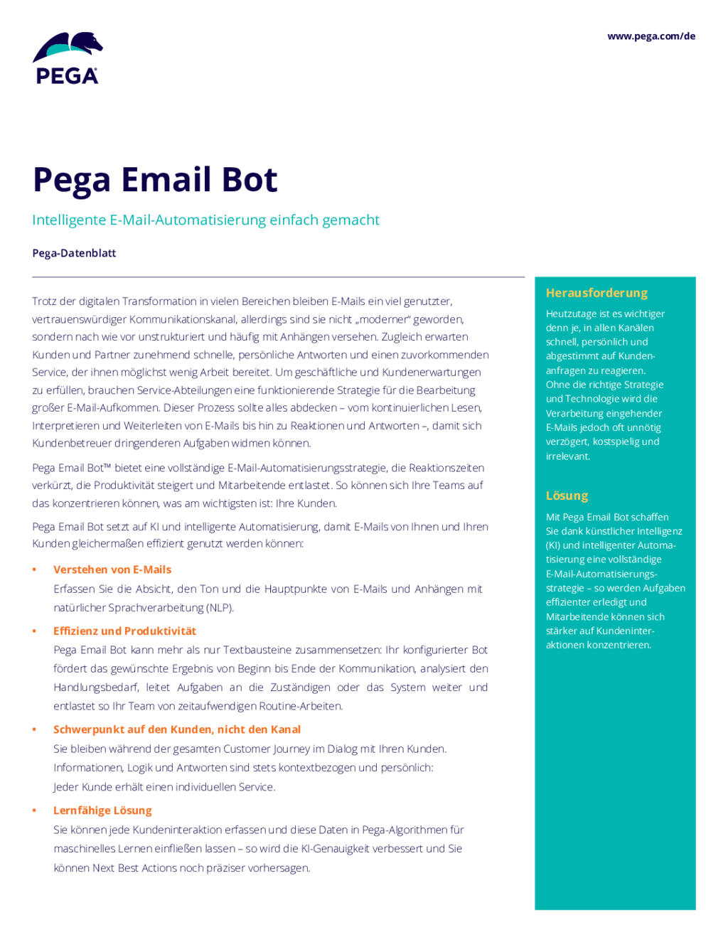 Pega Email Bot Datenblatt