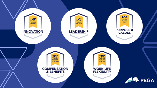 Top Workplaces recognized Pega for building an outstanding culture in Leadership, Innovation, Compensation & Benefits, and Work-Life Flexibility, based on employee feedback.