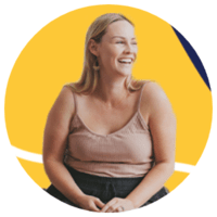 Graphic of a woman interacting with a screen accompanied by various symbols