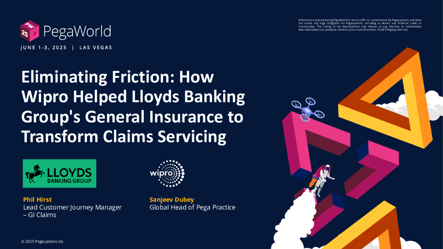 PegaWorld 2025: Eliminating Friction: How Wipro Helped Lloyds Banking Group's General Insurance to Transform Claims Servicing (Presentation)