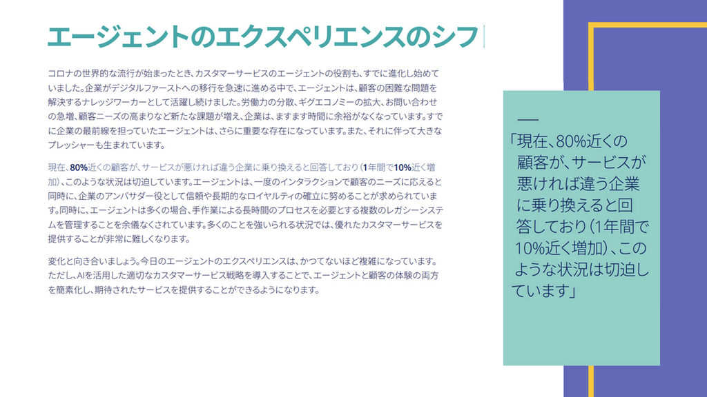 コンタクトセンターにおける業務の性質は劇的に変化し、もう後戻りはできないでしょう。 会話型AIによって、より多くの業務を自動化し、顧客とエージェントのニーズを満たすために、あらゆるユーザー体験を改善する方法をご紹介します。
