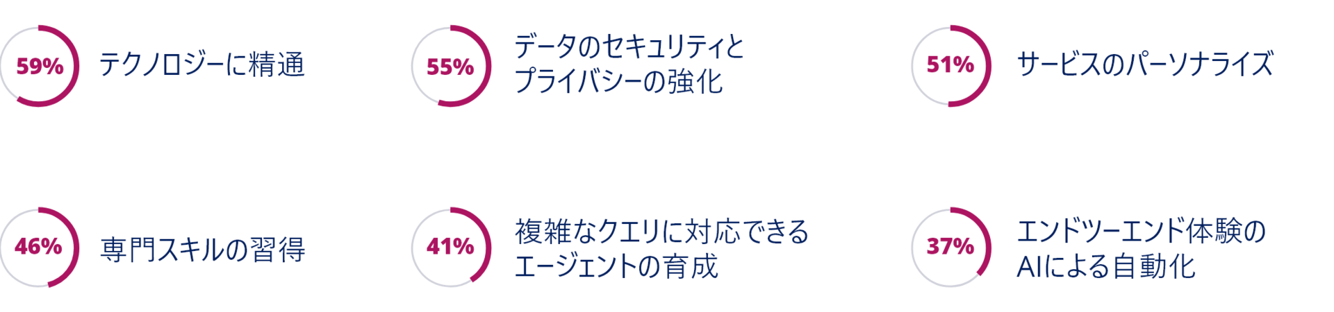 デジタルネイティブな世代は、カスタマーサービスに多くのことを求めます。 先を見越したソリューションから、最初の問い合わせでの解決やシームレスなセルフサービスまで、このアクティブで積極的な若い世代は、カスタマーサービスに一貫した共感的なアプローチを求めます。