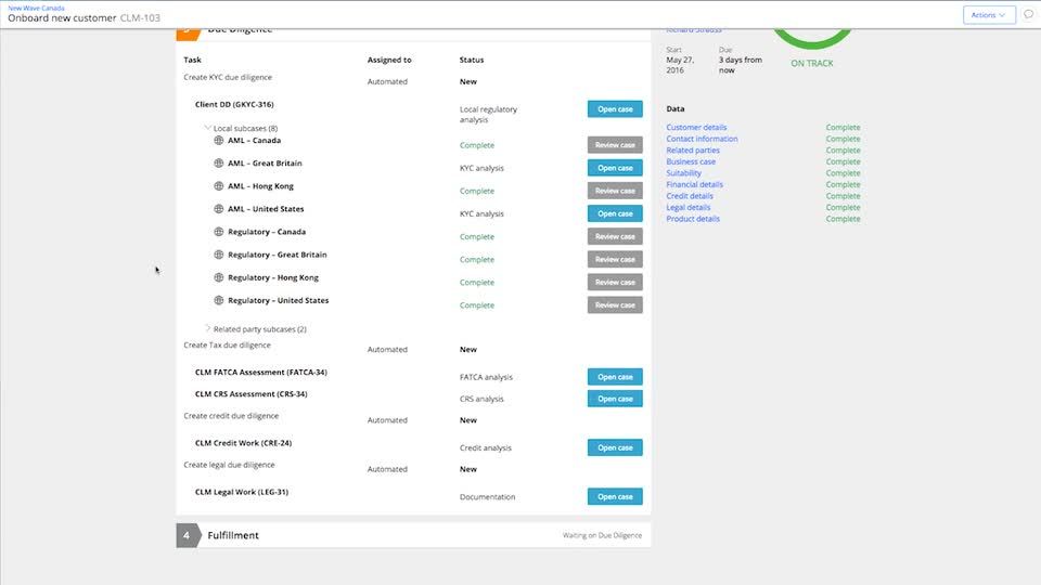 どんなにセールススタッフを指導しようと、あるいは、顧客の製品、口座、サービスに関するニーズを満たしていようと、銀行は、あらゆる動作に関して監督機関の要求を満たしていなければ話になりません。 ぺガのシステムは、ガイド付きプロセスと完全な監査証跡によって、銀行がすべてのコンプライアンスニーズを満たす手助けをします。