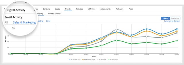All contacts have their own profile page, which includes relevant web, email, social, and other data. This can be leveraged to instrument engagement, inform follow-up activities, and understanding if the moment is right to sell or to service. This data also helps drive the the next best offers and actions for the contact.