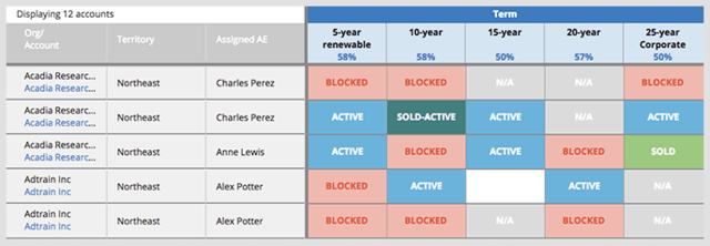 Sales Organizations typically use SFA systems to nurture and manage deals they have found in their sales pipeline. Engagement Maps help promote conversations around what is not in the pipeline by analyzing product penetration levels in each account. This "white space" can focus selling and marketing efforts and optimize pipeline and share of wallet.