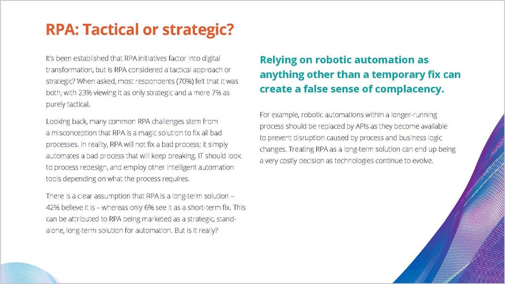 Robotic process automation (RPA) is often a priority of digital transformation (DX). But is it being used optimally? While RPA is valuable to the overall plan, it’s best used as a short-term fix.